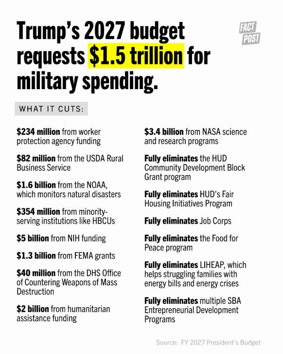 Pretty sure the American People who are struggling with higher prices at the gas pump, the grocery store, and the doctor's office because of Trump tariffs, wars of choice, and cuts to health care, do not think daycare, Medicare, and Medicaid are little things.