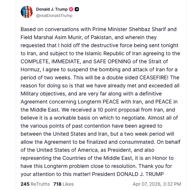 However, the Stable Genius agreed to a ceasefire based on Iran's ten-point plan, which includes the following proposals:
